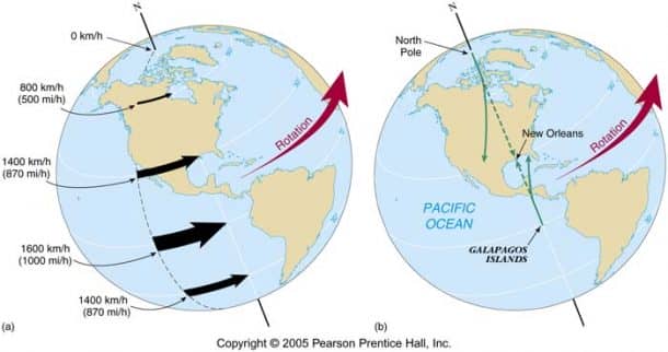 问题是,为什么是纽芬兰?我们能在世界的任何地方观察到同样的旋转吗?是的!你可以在任何纬度相同的地方观察到同样的现象。大气随地球旋转的速度取决于地球的纬度。