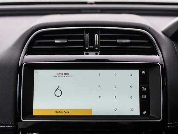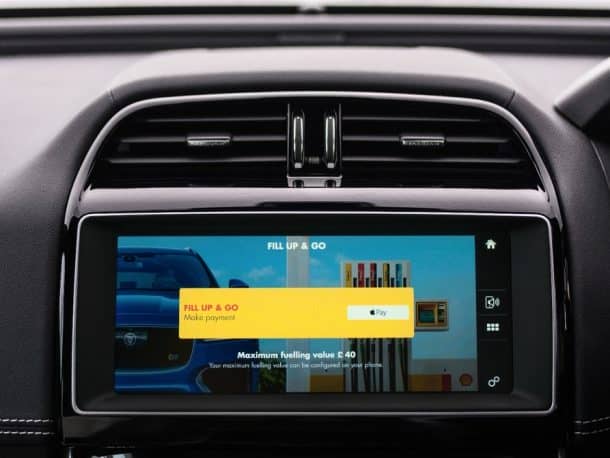 现在走在泵读卡器或在长长的队伍在收银员面前,你能够支付燃料使用Shell应用程序通过中央控制局面触摸屏车内。应用程序连接到贝宝或苹果支付,以及壳牌公司计划将Android支付系统今年晚些时候。