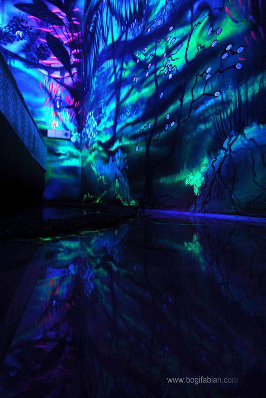 费边人的作品在黑暗中尤为突出。除非把灯关掉,否则人们甚至无法想象这堵墙有什么神奇之处。