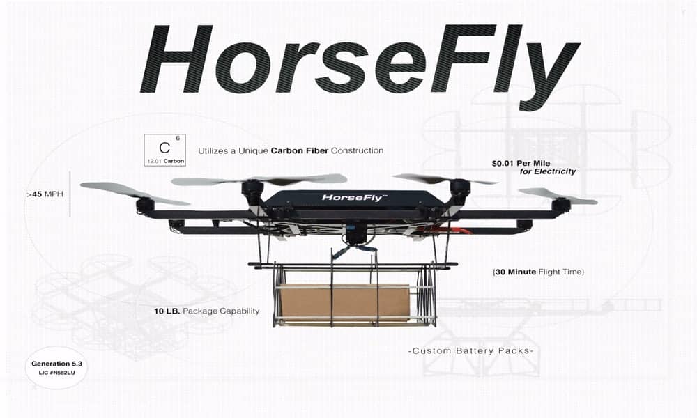 该公司已经在制造Workhorse HorseFly无人机交付系统,因此处理多直升机飞行控制系统的复杂部分已经得到了照顾。“马蝇”送货无人机已经被联合包裹服务用于日常投递作业,能够在30分钟的飞行中携带10磅重的包裹。