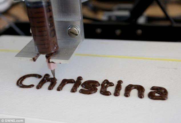 这台机器名为“巧克力创造者”(Choc Creator),它根据电脑的指令,用融化的巧克力制作出想要的图像。它能够在任何平面上打印不同层次的巧克力,包括白巧克力、牛奶巧克力和黑巧克力,这意味着巧克力创造者可以产生无限的图像可能性。这台机器有一个特殊的头部,使它能够生产出宽为半毫米的巧克力线,比专业艺术家使用滚边袋更精确。