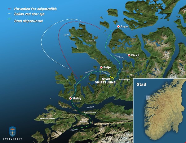 船隧道是修建Stadhavet海西北海岸线的挪威,这被认为是最危险的海洋。隧道将提供船只安全路线沿着Stad半岛,以避免“最危险、最暴露”Stadhavet海的水域。海洋洋流沿着船的路线是粗糙的,和海浪导致危险这艘船的船员以及大规模的出货延迟时间表。船计划修建隧道通道的狭隘的地区Stad半岛连接两个峡湾结束。