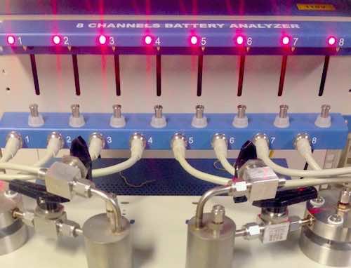 然后,通过连接电池的电子,过氧化锂被化学分解为锂离子和氧气,氧气被释放到空气中,锂离子被储存为金属锂。当放电开始时,氧气从环境中收集,并被消耗以形成过氧化锂——如此循环往复。