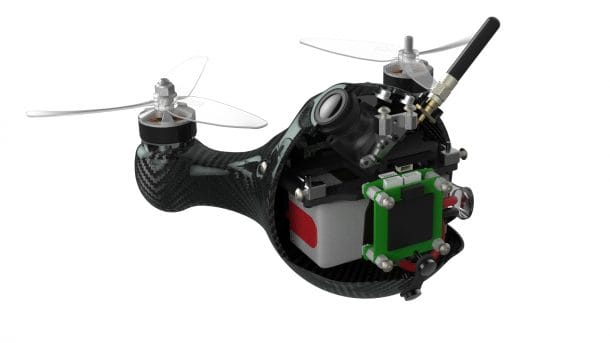 大多数竞速无人机都是在多层扁平碳框架上建造的,但光轮不一样。该设备集成到碳纤维外骨骼中,其内部由一个腔型模具形成,根据其需要承受的应力,厚度从1-4毫米不等。