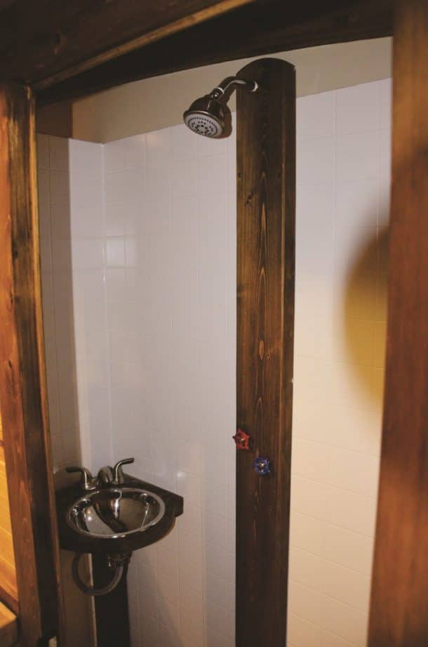 厨房装修中伍迪朴实的色调,小酒馆表。有足够的存储空间形式的几个白色的橱柜。一个大型水槽,甚至一个炉子和一个洗碗机的厨房完成。有一个单口淋浴除了一间小浴室的必需品。