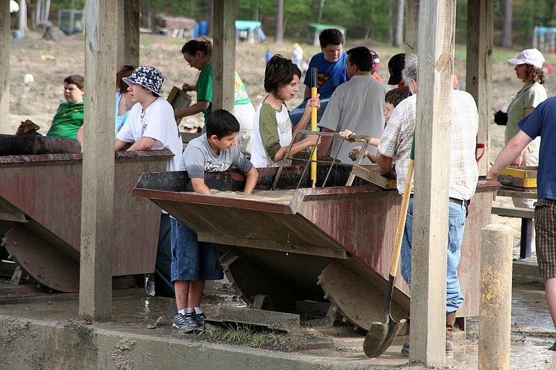欢迎来到美国阿肯色州默弗里斯伯勒的钻石火山口。这是世界上唯一向公众开放的钻石矿山,您可以寻找钻石,并在支付少量入场费后保留您发现的东西。该遗址最初是一个火山口,在数十万业余爱好者每年挖掘这占地37英亩的土地时,他们在寻找宝石时挖掘了这片37英亩的土地。Some of the miners make use of a special sieve known as ‘seruca’ for washing and separating the heavier diamonds from the lighter debris while others opt for more crude methods such as getting down on hand and knees while they claw at the dirt and look for jewels among the dirt.