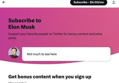 周四,Elon Musk在Twitter上宣布,Twitter的“超级”功能将改名为“订阅。“这个新特性将允许用户提供独家内容,如长篇文本、视频、和目前付费空间,收费的追随者。用户也将获得特殊的徽章。
