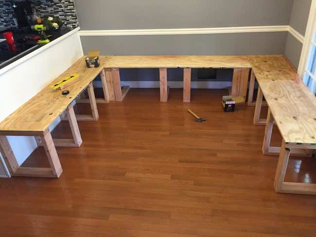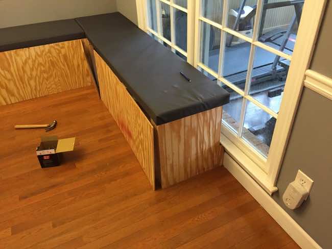 用更多的胶合板把支架藏在长凳下面。