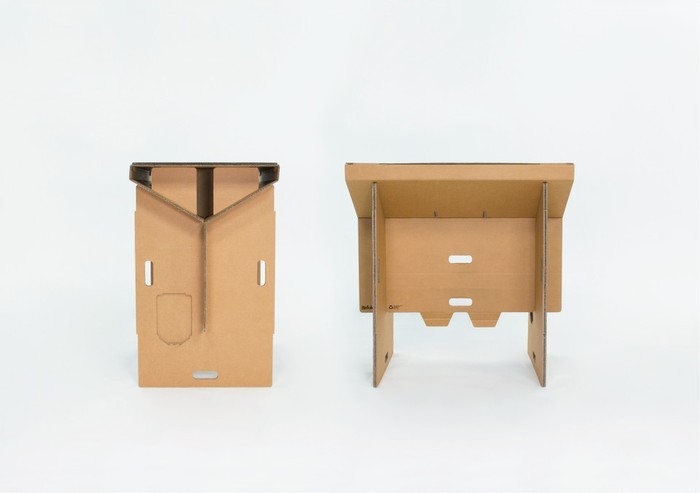 REDOLD的纸板站立式桌子不是第一个类型。但是,还有其他设计,重新设计设计之所以独特的原因是因为它以不同的高度可用,并且可以将其转换为随身携带的箱子以轻松运输。