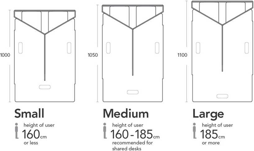 该桌子是由可回收纸板,7mm双式搭配牛皮牛皮的创建,重6.5千克。它有三种尺寸的小,中和大尺寸,分别测量39英寸,41英寸和43英寸的高度。这些尺寸的用户的建议高度分别为63英寸,63-73英寸和73英寸或以上。