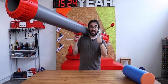 一旦建造了巨型NERF枪,他就使用健身泡沫辊和抛光垫创建了“怪物飞镖”。为了发射怪物飞镖,他使用厚厚的橡胶管将柱塞拉到飞镖上。如果您打算建造自己的nerf枪,下面的视频是必看的!