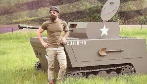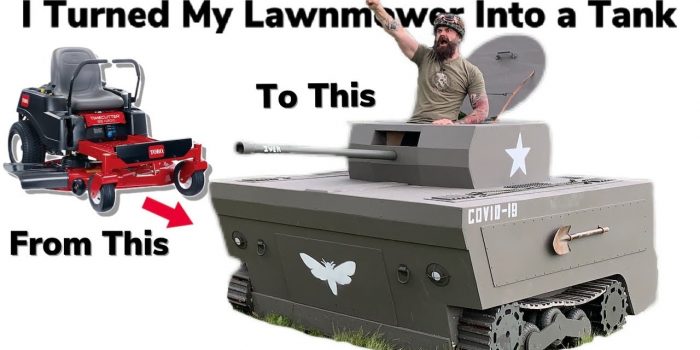 在“油漆工作”之后,他又增加了飞蛾和COVID-19徽章的设计。观看完整的视频转换骑马割草机成一个迷你坦克的视频。这家伙无疑拥有一些出色的技能。